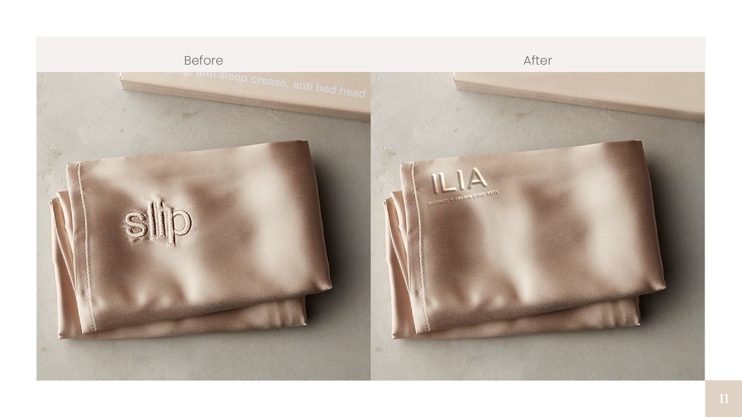 This product features the brand’s motto, “Protect and revive your skin,” reinforcing its functional and emotional value. Embossed or embroidered branding enhances the tactile quality of the silk, elevating the product’s sense of luxury and refinement.